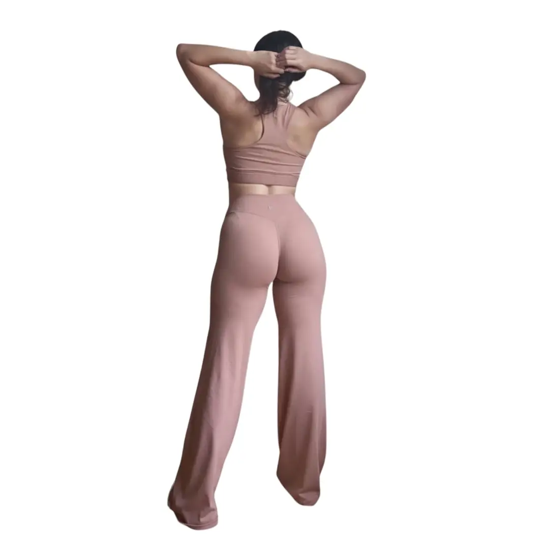 El diseño de pierna ancha (Flare) es la tendencia del momento. Proporciona una caída elegante desde la rodilla, permitiendo una libertad de movimiento incomparable. Perfectas para yoga, pilates o para un día de total relax sin sacrificar el estilo.